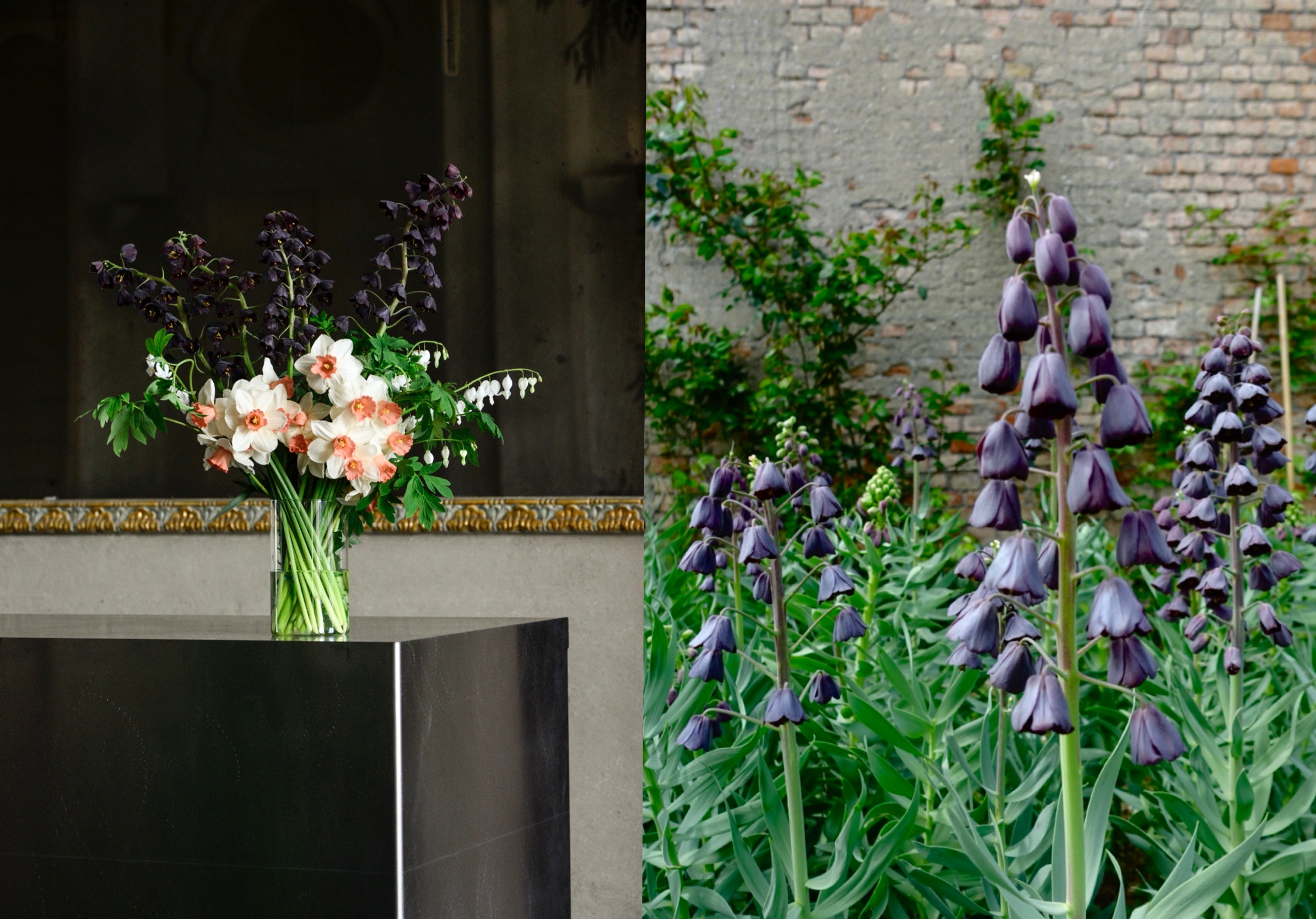 Realizziamo set attingendo a fiori di stagione che coltiviamo localmente o a materiale locally harvested come flora spontanea, rocce e rami dall’atmosfera non addomesticata e dal forte impatto visivo.